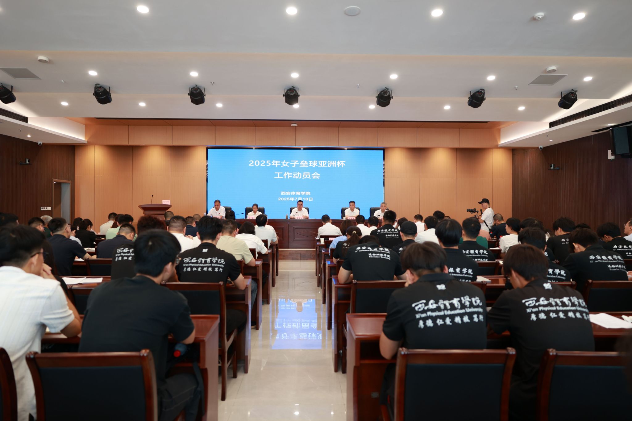 本网讯 7月10日,我校在鄠邑校区召开2025年女垒亚洲杯工作动员会,全面部署赛事筹备冲刺阶段工作。校长李富生主持并讲话,党委副书记马海涛,副校长谢英、张葆欣、雷振华出席,相关部门负责人及组委会全体工作人员参会。