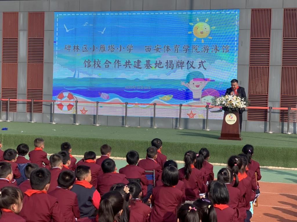 本网讯 为响应体育强国号召,着力提高青少年体质,大力推动大学运动场馆与全民健身健康的深度融合,10月26日下午,西安中体实业有限公司与西安市小雁塔小学举行合作共建研学基地揭牌及启动仪式。中体公司总经理吕学宏、小雁塔小学校长钱发成等领导出席,300余名师生及教练员一同在小雁塔小学参加活动。