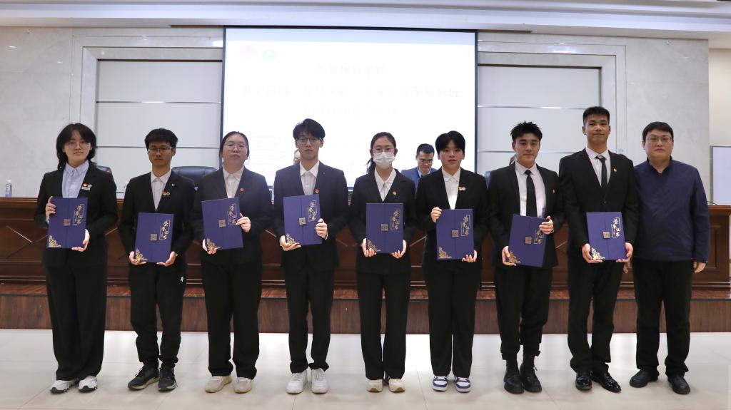 (王鹏为第十三期“青马工程”大学生骨干培训班优秀学员代表颁发荣誉证书)